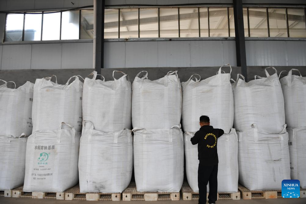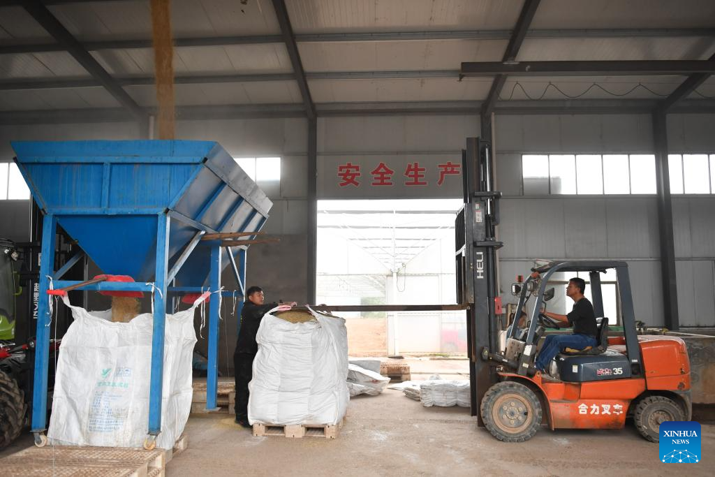 Qiu Bin has applied more machinery and unmanned aerial vehicle equipment in seedling cultivation, farming, management, harvesting, and storage to improve rice planting efficiency and refine management. The quality and yield of rice in his cooperative have thus been enhanced. (Xinhua/Chen Zhenhai)