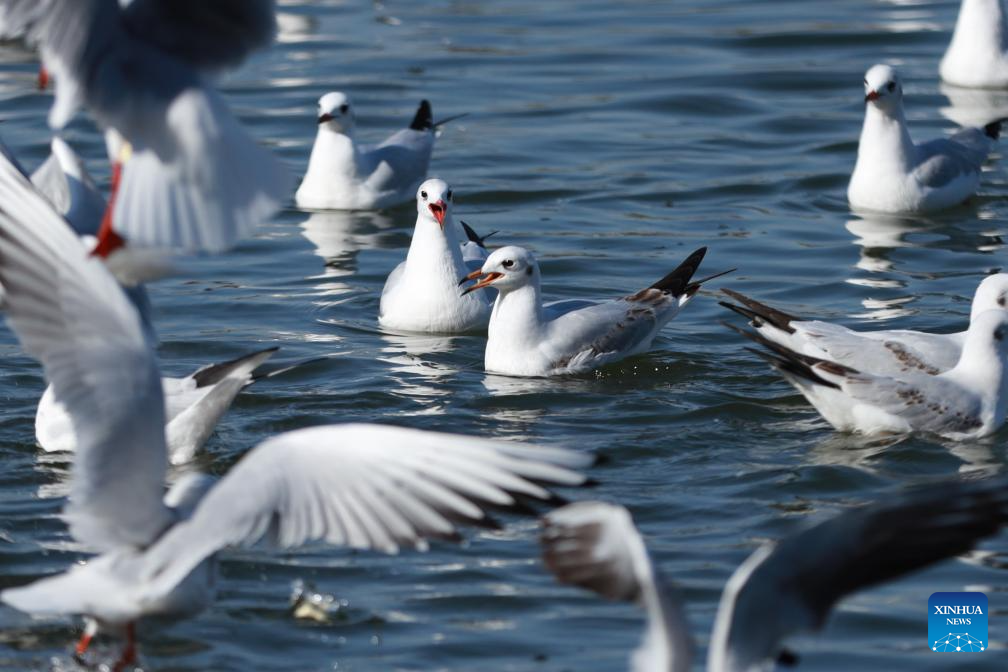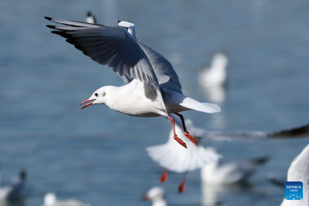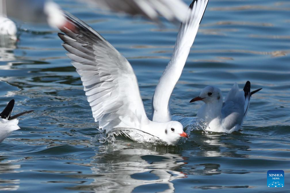 This photo taken on Oct. 31, 2025 shows black-headed gulls in Yinchuan, northwest China's Ningxia Hui Autonomous Region. (Xinhua/Lyu Ze)