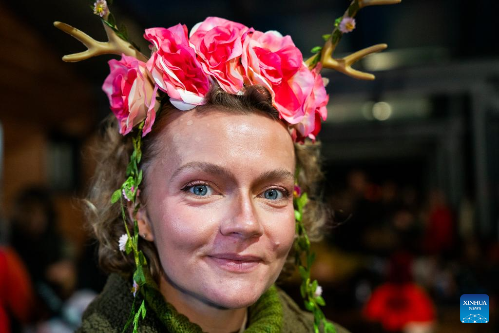 A woman with festive decorations pose for a photo at a botanical garden in Prague, the Czech Republic, Oct. 31, 2025. People enjoyed plenty of fun and games at the botanical garden during the Halloween Festival celebrations. (Photo by Dana Kesnerova/Xinhua)