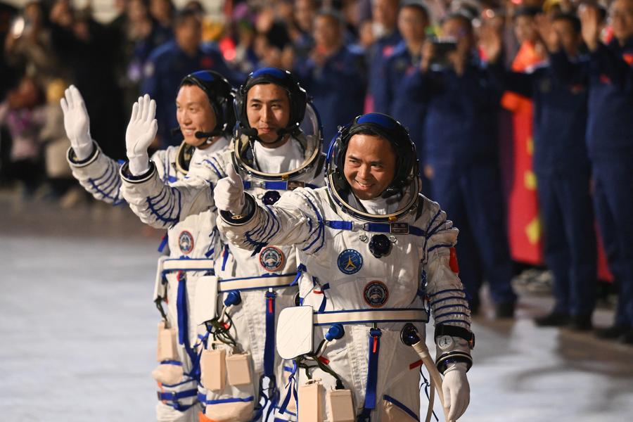 JIUQUAN, Nov. 1 (Xinhua) -- China successfully launched the Shenzhou-21 crewed spaceship on Friday, sending three astronauts to its orbiting space station on a six-month mission.