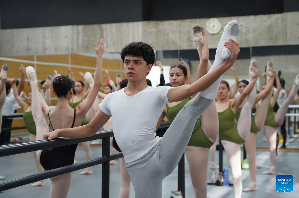 Students learn ballet at a masterclass held by the National Ballet of China at the National Arts Center in Mexico City, Mexico, Oct. 31, 2025. On Friday, the National Ballet of China gave a masterclass to students of dance schools in Mexico City, and learned local dances of Mexico. (Xinhua/Li Mengxin)