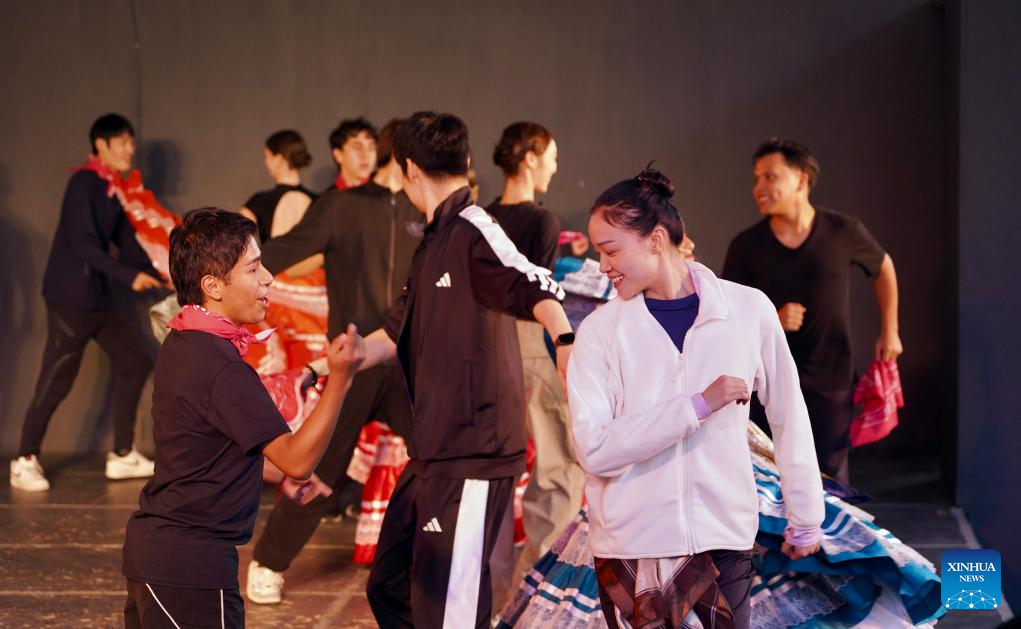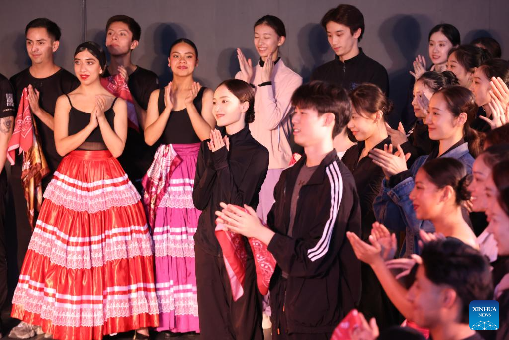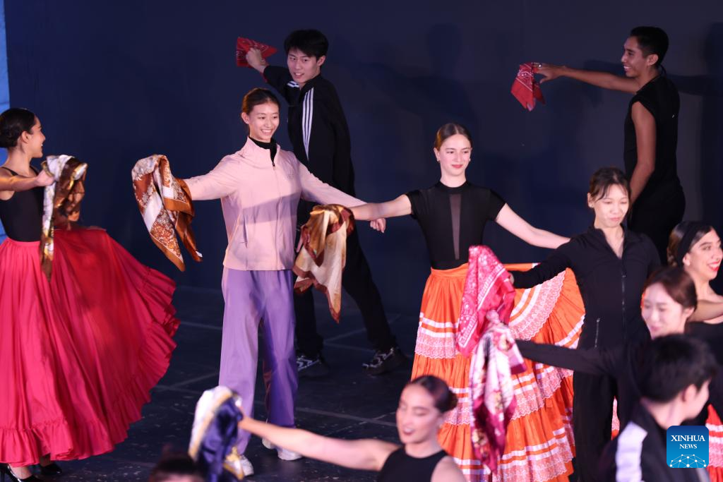 Artists from the National Ballet of China learn Mexican dances at the National Arts Center in Mexico City, Mexico, Oct. 31, 2025. On Friday, the National Ballet of China gave a masterclass to students of dance schools in Mexico City, and learned local dances of Mexico. (Xinhua/Li Mengxin)