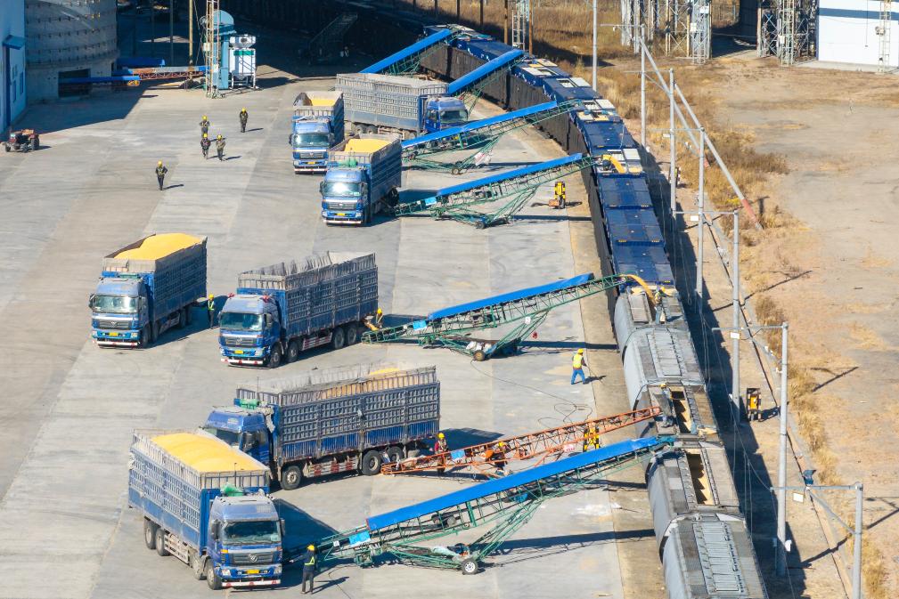 HARBIN, Nov. 1 (Xinhua) -- As Heilongjiang, one of China's major grain-producing province, has recently entered a busy period of grain transportation, China Railway Harbin Group Co., Ltd. has built an efficient and collaborative multimodal transport system, and established a connection mechanism with grain production enterprises in advance, to promote cost reduction, quality improvement and efficiency enhancement of the grain transportation.