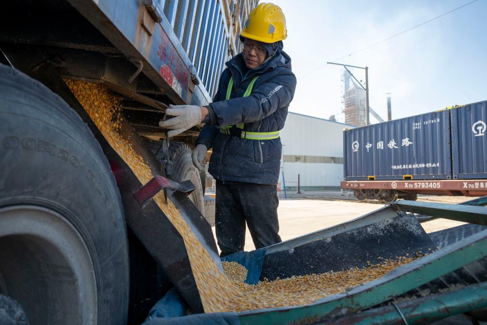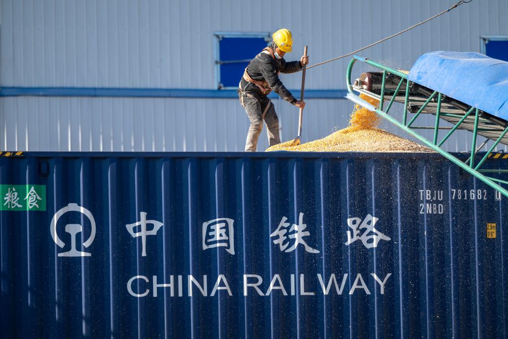 A drone photo shows a train loaded with corns pulling out of Shengchang Station in Shuangyashan City, northeast China's Heilongjiang Province, Oct. 31, 2025. (Photo by Wu Yunan/Xinhua)Workers conduct loading operations at a logistics park of China's leading food trader China Oil and FoodStuffs Corporation in Shuangyashan City, northeast China's Heilongjiang Province, Oct. 31, 2025. (Xinhua/Zhang Tao)An aerial drone photo taken on Oct. 31, 2025 shows a freight train departing from a logistics park of China's leading food trader China Oil and FoodStuffs Corporation in Shuangyashan City, northeast China's Heilongjiang Province. (Xinhua/Zhang Tao)An aerial drone photo taken on Oct. 31, 2025 shows workers conducting loading operations at a logistics park of China's leading food trader China Oil and FoodStuffs Corporation in Shuangyashan City, northeast China's Heilongjiang Province. (Xinhua/Zhang Tao)A worker conducts loading operations at a logistics park of China's leading food trader China Oil and FoodStuffs Corporation in Shuangyashan City, northeast China's Heilongjiang Province, Oct. 31, 2025. (Xinhua/Zhang Tao)A worker loads grain at a logistics park of China's leading food trader China Oil and FoodStuffs Corporation in Shuangyashan City, northeast China's Heilongjiang Province, Oct. 31, 2025. (Xinhua/Zhang Tao)A worker conducts loading operations at a logistics park of China's leading food trader China Oil and FoodStuffs Corporation in Shuangyashan City, northeast China's Heilongjiang Province, Oct. 31, 2025. (Xinhua/Zhang Tao)A loaded freight train is ready to depart from a logistics park of China's leading food trader China Oil and FoodStuffs Corporation in Shuangyashan City, northeast China's Heilongjiang Province, Oct. 31, 2025. (Xinhua/Zhang Tao)Workers conduct sampling operations at a storage warehouse in a logistics park of China's leading food trader China Oil and FoodStuffs Corporation in Shuangyashan City, northeast China's Heilongjiang Province, Oct. 31, 2025. (Xinhua/Zhang Tao)