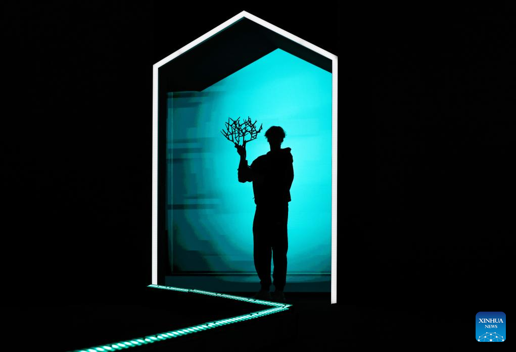 Jannik Sinner looks at the trophy during the reward presenting ceremony after the final match between Jannik Sinner of Italy and Felix Auger-Aliassime of Canada at the Paris ATP Masters 1000 tennis tournament at Paris La Defense Arena in Paris, France, on Nov. 2, 2025. (Xinhua/Gao Jing)