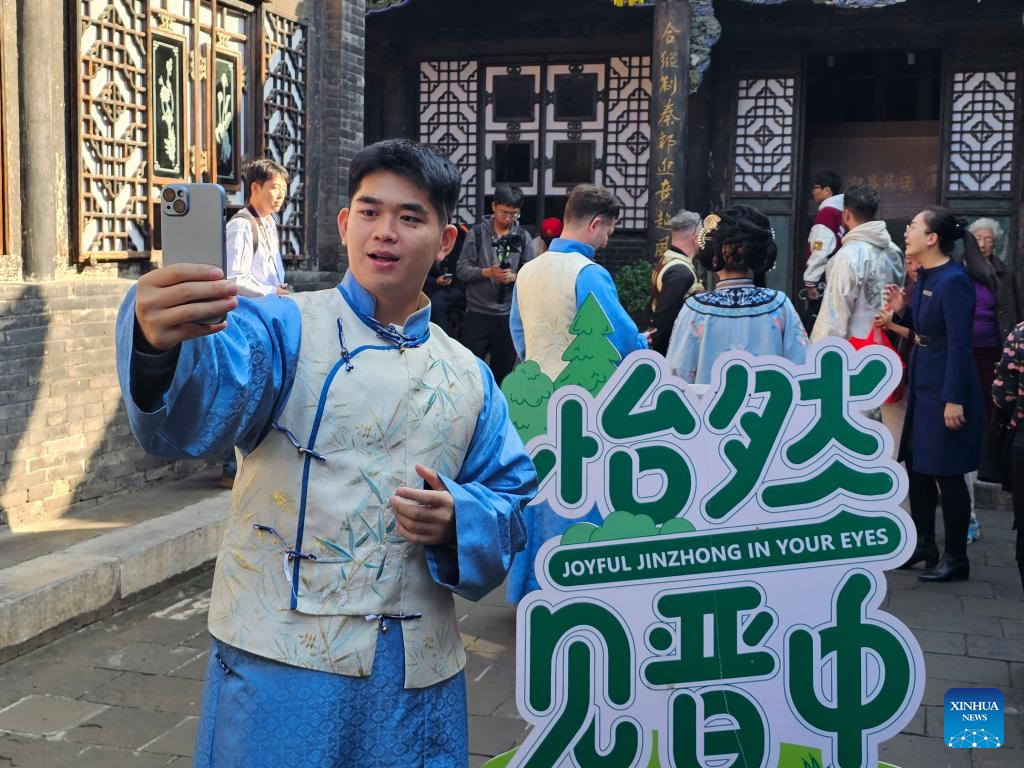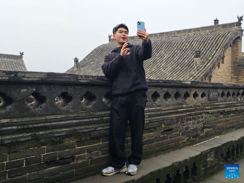 Veldesen Yaputra shoots a video at the Wang Family Courtyard in Lingshi County, north China's Shanxi Province, Oct. 16, 2025.(Xinhua/Li Yuanhao)