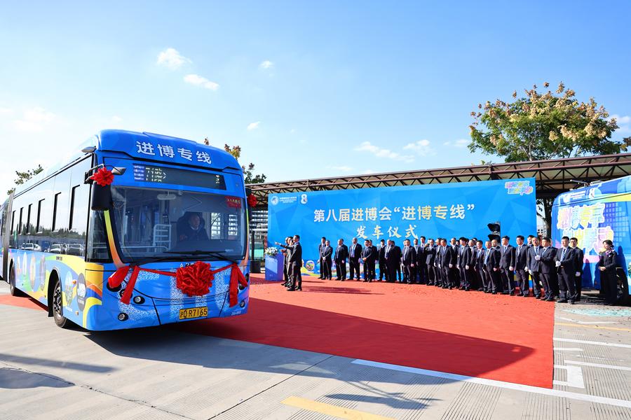 This photo taken on Oct. 29, 2025 shows a logo of the 8th China International Import Expo (CIIE) near the National Exhibition and Convention Center (Shanghai), the main venue for the CIIE, in east China's Shanghai. (Xinhua/Liu Ying)Representatives of exhibitors for the upcoming 8th China International Import Expo (CIIE) wave a flag during a ceremony marking the arrival of exhibits at the National Exhibition and Convention Center (Shanghai), the main venue for the CIIE, in east China's Shanghai, Oct. 23, 2025. (Xinhua/Fang Zhe)This photo taken on Oct. 29, 2025 shows a dance performance at a swearing-in ceremony for volunteers of the upcoming 8th China International Import Expo (CIIE) at Shanghai Exhibition Center in east China's Shanghai. (Xinhua/Liu Ying)A bus of the special line of the 8th China International Import Expo (CIIE) is seen at the launch ceremony in east China's Shanghai, Oct. 29, 2025. (Xinhua/Fang Zhe)Foreign passengers and train attendants pose for a photo with a countdown board for the 8th China International Import Expo (CIIE) at Shanghai Hongqiao Railway Station in east China's Shanghai, Oct. 30, 2025. China Railway Shanghai Group Co., Ltd. launched a themed activity here, introducing highlights of the upcoming CIIE to passengers aboard the high-speed railway train G8. (Xinhua/Wang Xiang)A woman selects products at the CIIE Bazaar City Arena in east China's Shanghai, Nov. 1, 2025. (Xinhua/Chen Haoming)