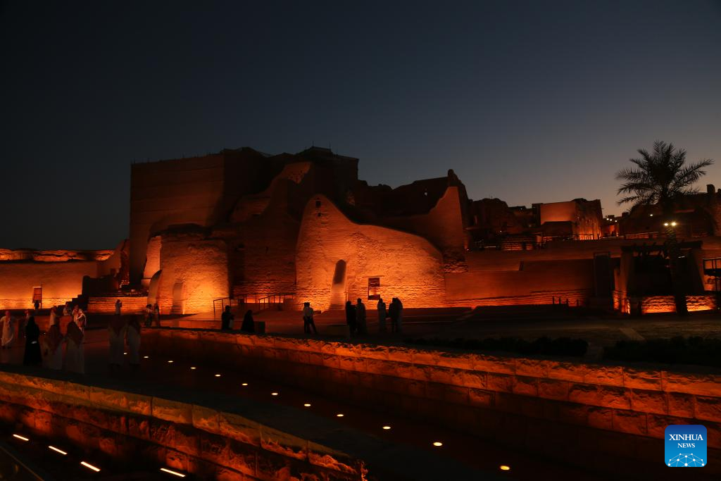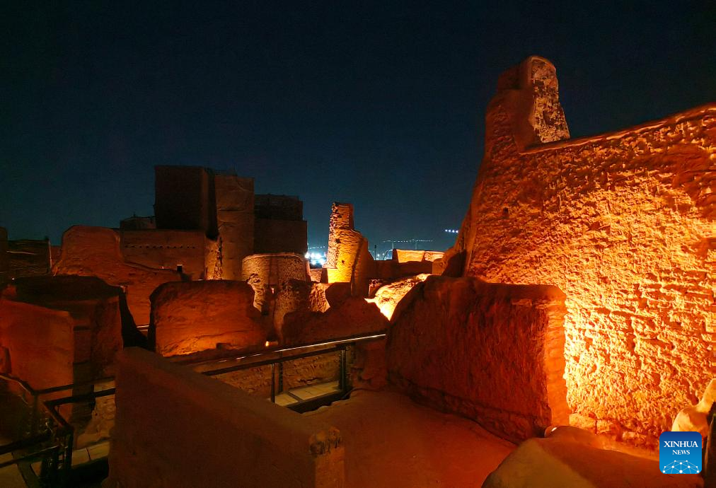 This photo taken on Oct. 27, 2025 shows the night view of Diriyah in Riyadh, Saudi Arabia. Located a short drive from Riyadh's city center, the Diriyah holds historical significance as the birthplace of the Kingdom of Saudi Arabia, dating back to 1727. (Xinhua/Sha Dati)