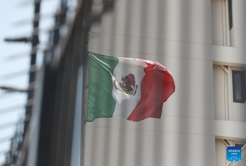 Photo taken on Nov. 4, 2025, shows a Mexican flag inside the Mexican Embassy in Lima, Peru. The government of Peru has decided to break diplomatic relations with Mexico, Peruvian Foreign Minister Hugo de Zela told a press conference on Monday. (Photo by Mariana Bazo/Xinhua)