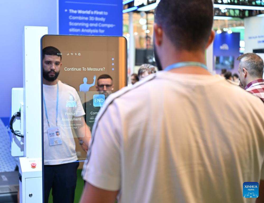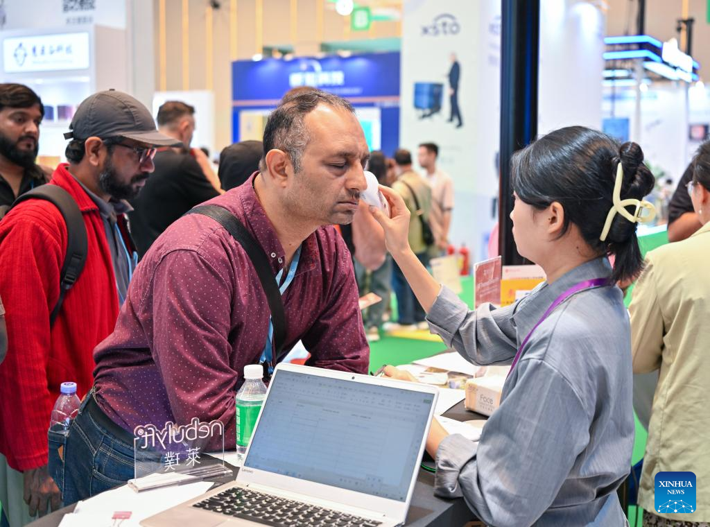 A buyer experiences an intelligent body measurement equipment during the 138th edition of the China Import and Export Fair in Guangzhou, south China's Guangdong Province, Nov. 3, 2025. The 138th Canton Fair, known officially as the China Import and Export Fair, came to a close on Tuesday in Guangzhou, the capital city of south China's Guangdong Province, having seen a record number of overseas buyers attend. (Xinhua/Xiao Ennan)