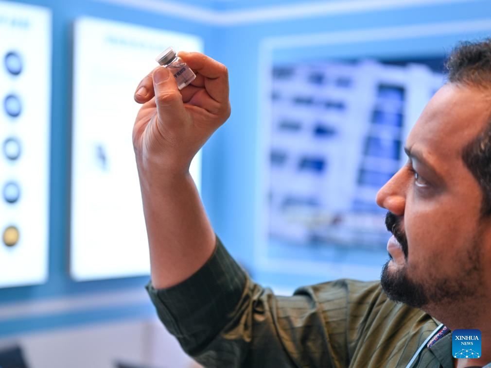 A buyer looks at a 3D-printed sample of biological product during the 138th edition of the China Import and Export Fair in Guangzhou, south China's Guangdong Province, Nov. 3, 2025. The 138th Canton Fair, known officially as the China Import and Export Fair, came to a close on Tuesday in Guangzhou, the capital city of south China's Guangdong Province, having seen a record number of overseas buyers attend. (Xinhua/Xiao Ennan)