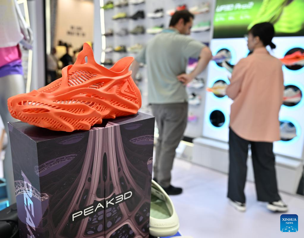 This photo taken on Nov. 3, 2025 shows a 3D-printed shoe during the 138th edition of the China Import and Export Fair in Guangzhou, south China's Guangdong Province. The 138th Canton Fair, known officially as the China Import and Export Fair, came to a close on Tuesday in Guangzhou, the capital city of south China's Guangdong Province, having seen a record number of overseas buyers attend. (Xinhua/Xiao Ennan)