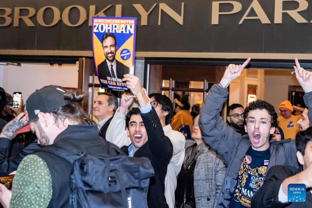NEW YORK, Nov. 4 (Xinhua) -- Democratic candidate Zohran Mamdani won the New York City mayoral election Tuesday night, becoming the first muslim mayor of the most populous city in the United States.