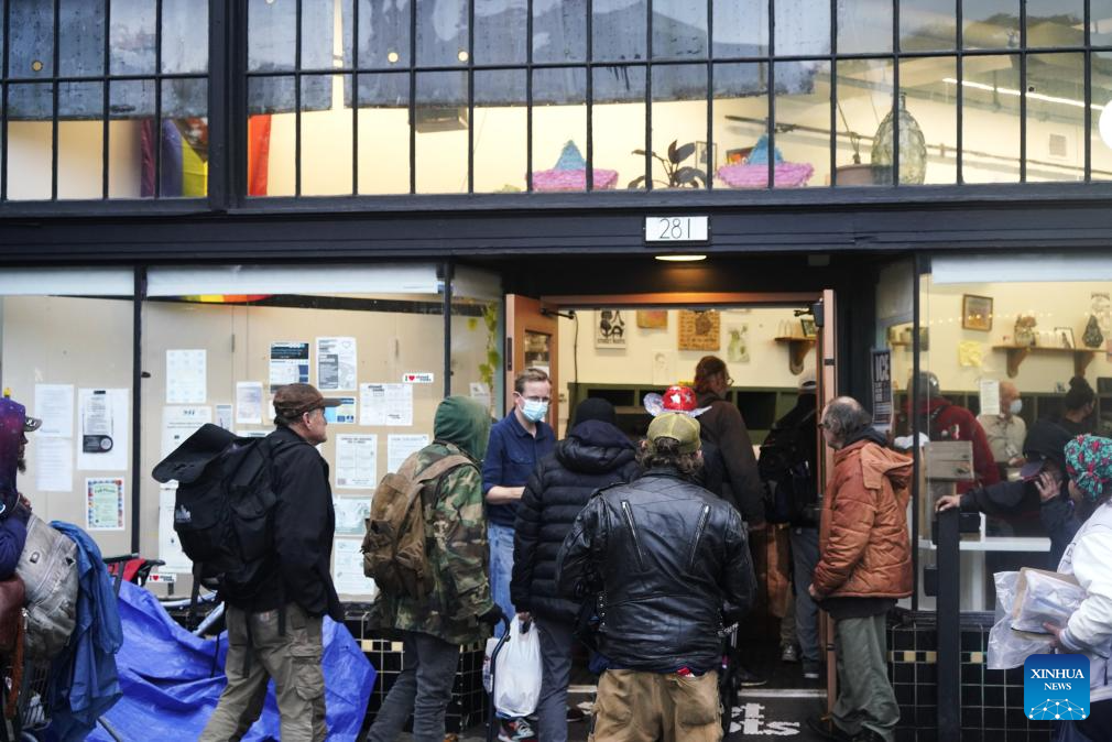 Homeless persons wait to receive relief supplies from a nonprofit organization in Portland, Oregon, the United States, Nov. 5, 2025. On Wednesday, the U.S. federal government shutdown entered its 36th day, surpassing the previous 35-day record set during the 2018-2019 shutdown, making it the longest government shutdown in U.S. history. (Xinhua/Wu Xiaoling)