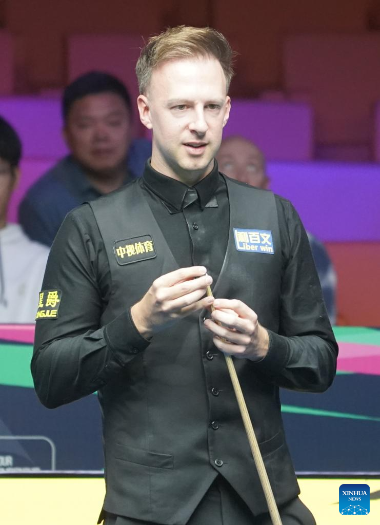 Judd Trump of England competes during the round of 16 match against Wu Yize of China at the 2025 World Snooker Tour International Championship in Nanjing, east China's Jiangsu Province, Nov. 5, 2025. (Photo by Liu Zhenrui/Xinhua)