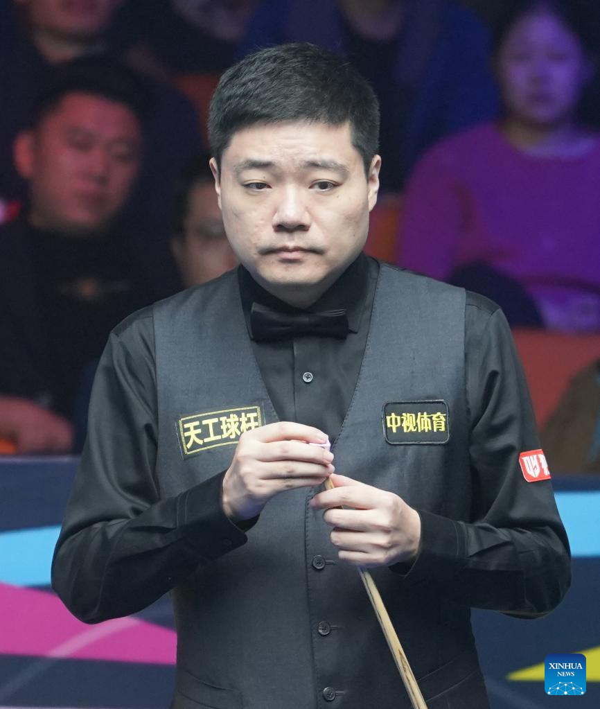 Ding Junhui competes during the round of 16 match between Ding Junhui of China and Shaun Murphy of England at the 2025 World Snooker Tour International Championship in Nanjing, east China's Jiangsu Province, Nov. 5, 2025. (Photo by Liu Zhenrui/Xinhua)