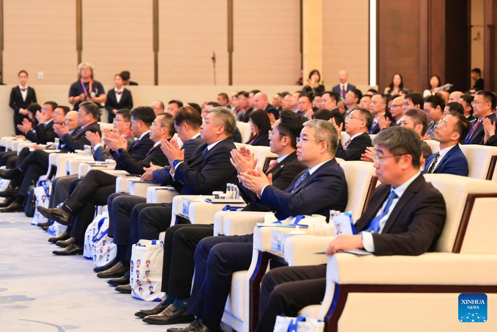 A sub-forum titled "Fostering Resilient Global Industrial and Supply Chains Through Open Cooperation Among Enterprises" is held during the 8th Hongqiao International Economic Forum at the National Exhibition and Convention Center (Shanghai) in Shanghai, east China, Nov. 6, 2025. (Xinhua/Liu Jiaqi)
