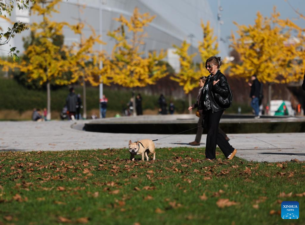 People visit the Sempione Park in Milan, Italy, Nov. 5, 2025. (Xinhua/Li Jing)