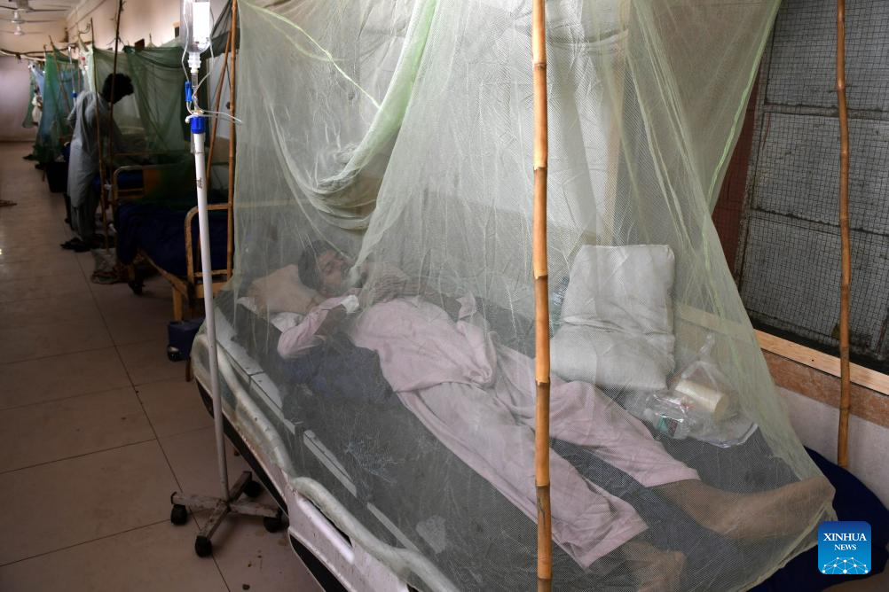 A patient infected with dengue fever is treated at a hospital in southern Pakistan's Hyderabad on Nov. 6, 2025. At least 21 people have died from dengue fever in Pakistan's southern Sindh province so far this year, as health authorities battle a sharp rise in infections across the region, officials said on Thursday. (Str/Xinhua)