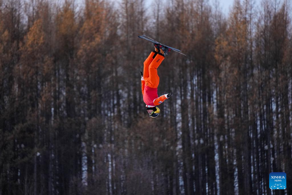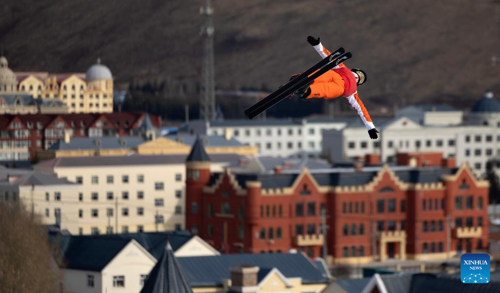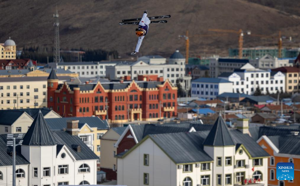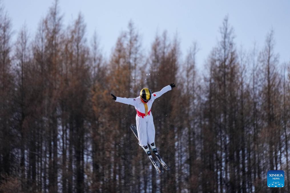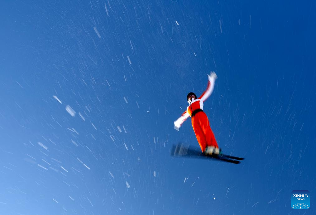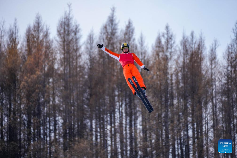 Wang Xindi of team China attends a training session of freestyle skiing aerials for the Milano-Cortina 2026 Olympic Winter Games in Arxan, north China's Inner Mongolia Autonomous Region, Nov. 7, 2025. (Xinhua/Hu Chao)