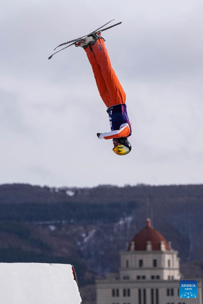 Xu Mengtao of team China attends a training session of freestyle skiing aerials for the Milano-Cortina 2026 Olympic Winter Games in Arxan, north China's Inner Mongolia Autonomous Region, Nov. 7, 2025. (Xinhua/Fei Maohua)