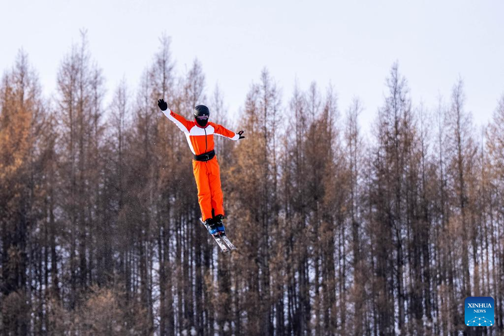 Sun Jiaxu of team China attends a training session of freestyle skiing aerials for the Milano-Cortina 2026 Olympic Winter Games in Arxan, north China's Inner Mongolia Autonomous Region, Nov. 6, 2025. (Xinhua/Fei Maohua)