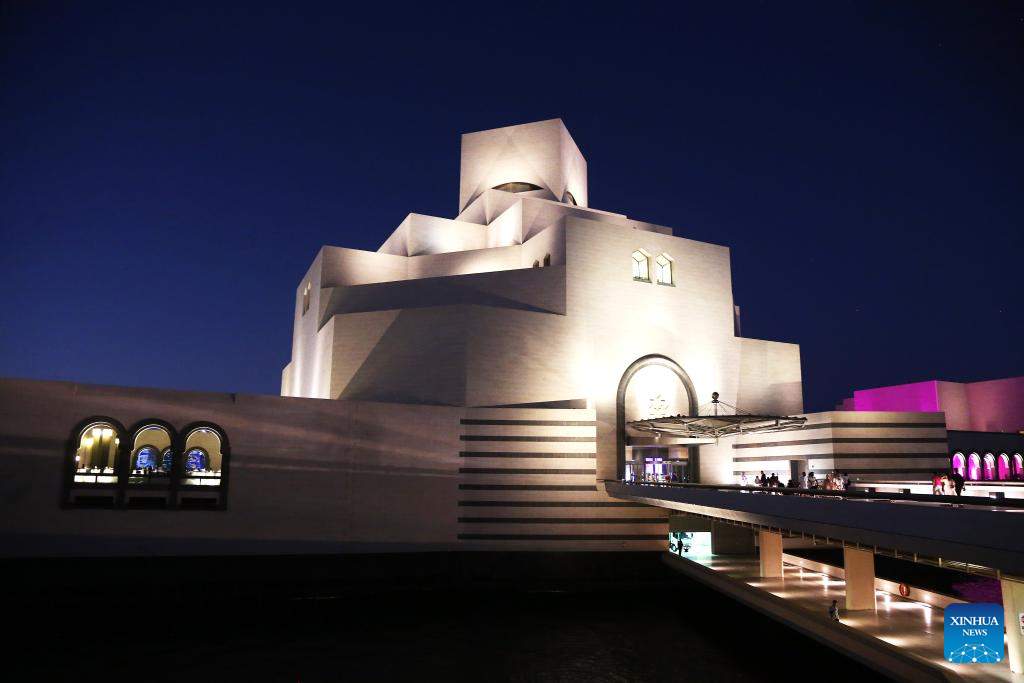 This photo taken on Nov. 3, 2025 shows a night view of the Museum of Islamic Art in Doha, Qatar. (Xinhua/Shadati)
