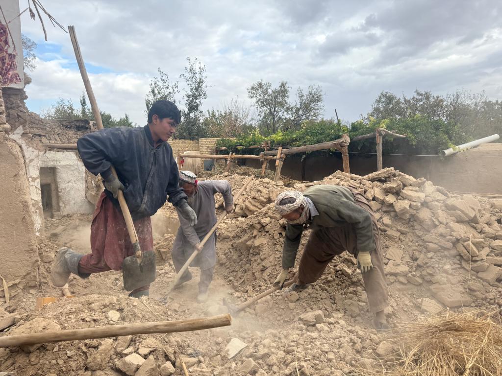 Thirty hours after the devastating earthquake, reporters from Xinhua arrived in Khulm district, the area that suffered the heaviest destruction in northern Samangan province. By then, official rescue operations had already been halted. Yet, local residents, driven by solidarity and resilience, continued clearing the debris side by side, working tirelessly to retrieve what little remained of their belongings from beneath the rubble.