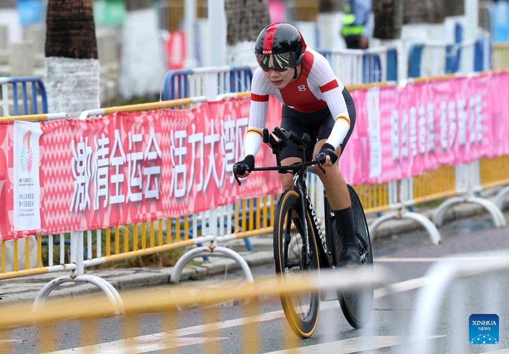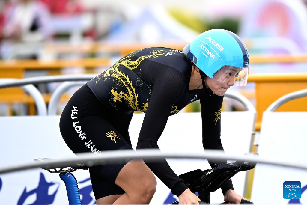 Guan Siqi of Heilongjiang competes during the women's individual time trial of cycling road at China's 15th National Games in Zhuhai, south China's Guangdong Province, Nov. 7, 2025. (Xinhua/Deng Hua)