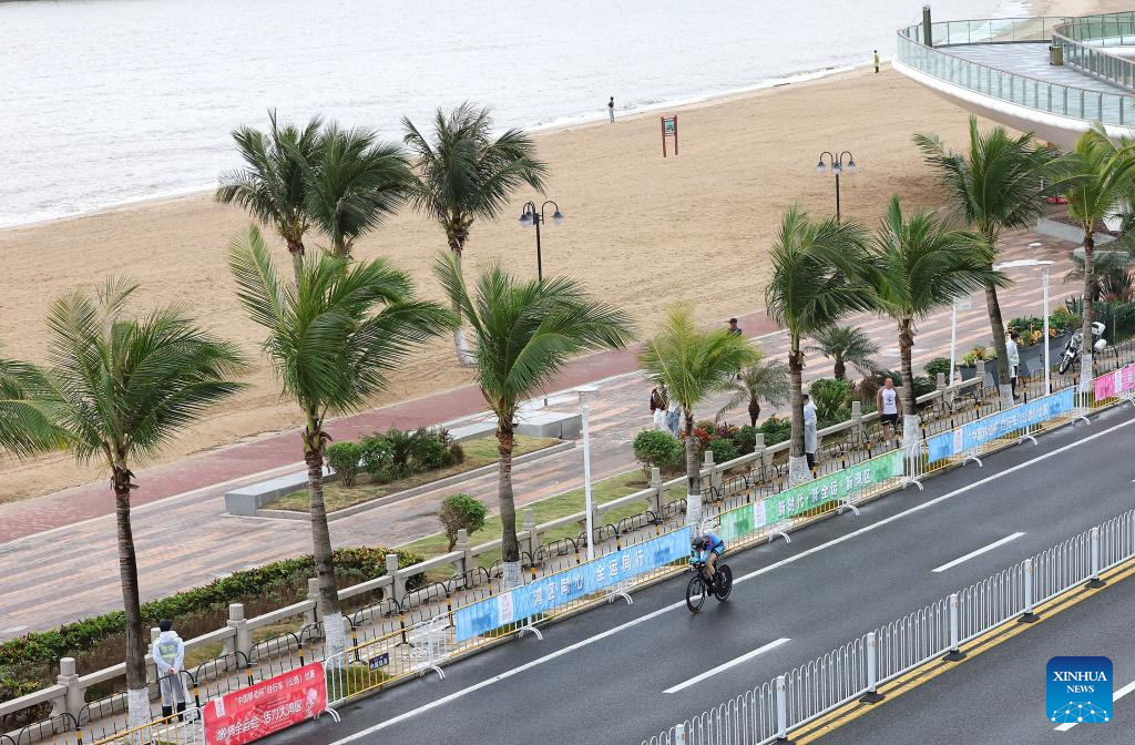 Zhang Hao of Hainan competes during the women's individual time trial of cycling road at China's 15th National Games in Zhuhai, south China's Guangdong Province, Nov. 7, 2025. (Xinhua/Lian Zhen)