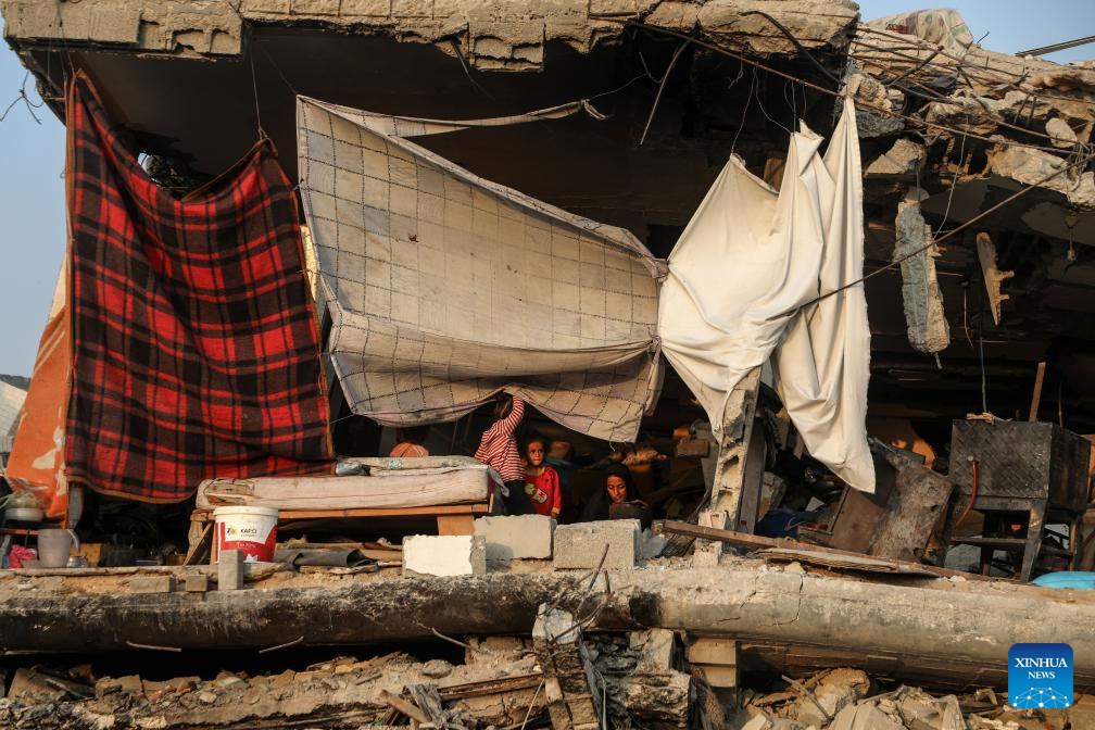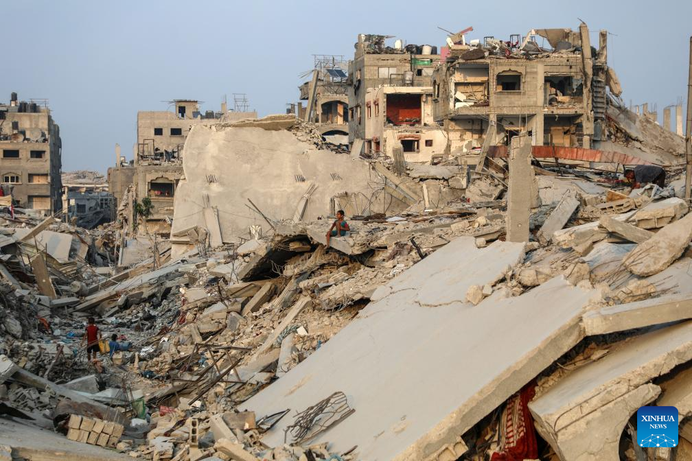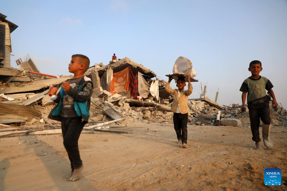 Palestinians are seen after they returned to the destroyed Sheikh Radwan area, north of Gaza City, Nov. 6, 2025. (Photo by Rizek Abdeljawad/Xinhua)