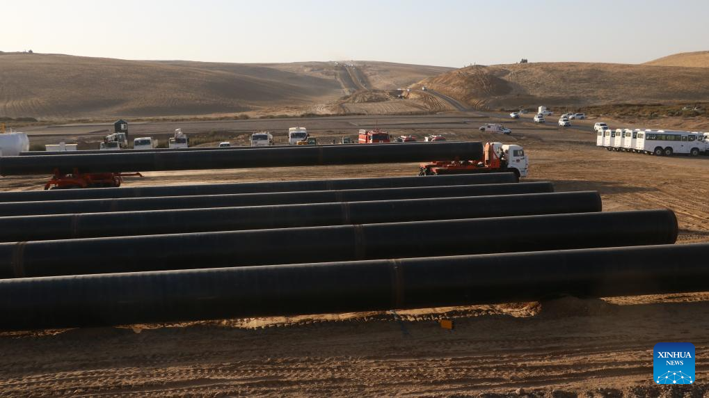 This photo taken on Oct. 20, 2025 shows equipment for the construction of the Turkmenistan-Afghanistan-Pakistan-India (TAPI) gas pipeline in Herat province, western Afghanistan. (Photo by Mashal/Xinhua)