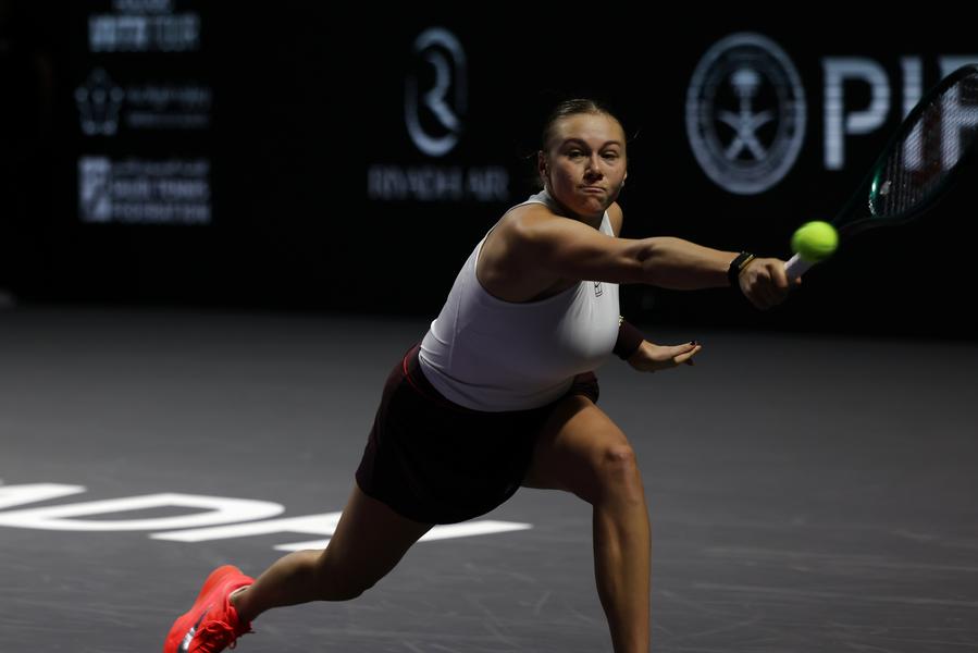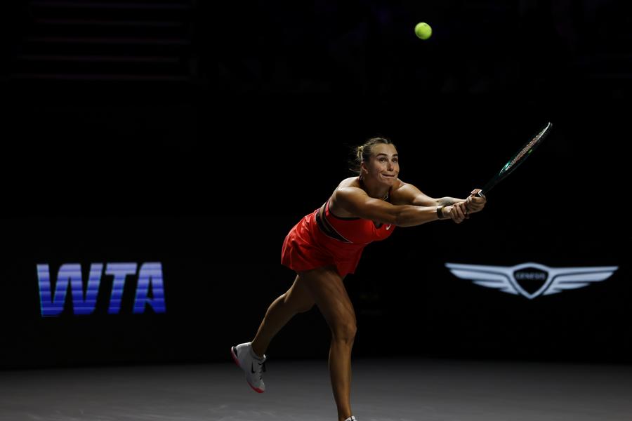 RIYADH, Nov. 7 (Xinhua) -- Top seed Aryna Sabalenka of Belarus battled past American Amanda Anisimova in three sets on Friday, setting up a final clash with Kazakhstan's Elena Rybakina at the 2025 WTA Finals.