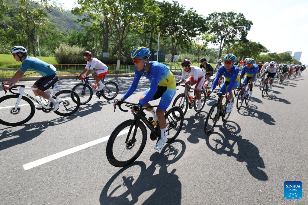 Cyclists compete during the men's road race of cycling road at China's 15th National Games in south China's Guangdong Province, Nov. 8, 2025. (Xinhua/Lian Zhen)