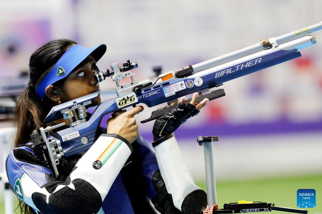 Elavenil Valarivan of India is seen during the 10m air rifle women's final of shooting at the 2025 ISSF World Championship Rifle/Pistol in Cairo, Egypt, on Nov. 8, 2025. (Xinhua/Ahmed Gomaa)