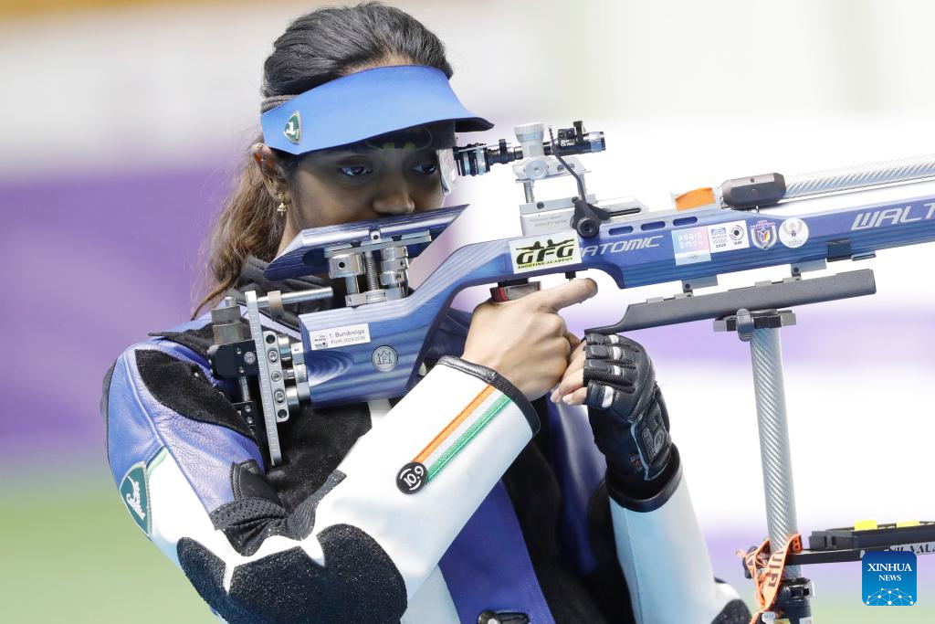 Elavenil Valarivan of India competes during the 10m air rifle women's final of shooting at the 2025 ISSF World Championship Rifle/Pistol in Cairo, Egypt, on Nov. 8, 2025. (Xinhua/Ahmed Gomaa)