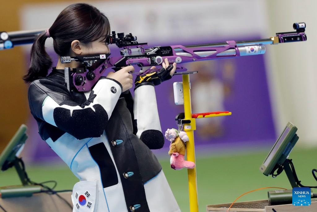 Ban Hyo-jin of South Korea competes during the 10m air rifle women's final of shooting at the 2025 ISSF World Championship Rifle/Pistol in Cairo, Egypt, on Nov. 8, 2025. (Xinhua/Ahmed Gomaa)