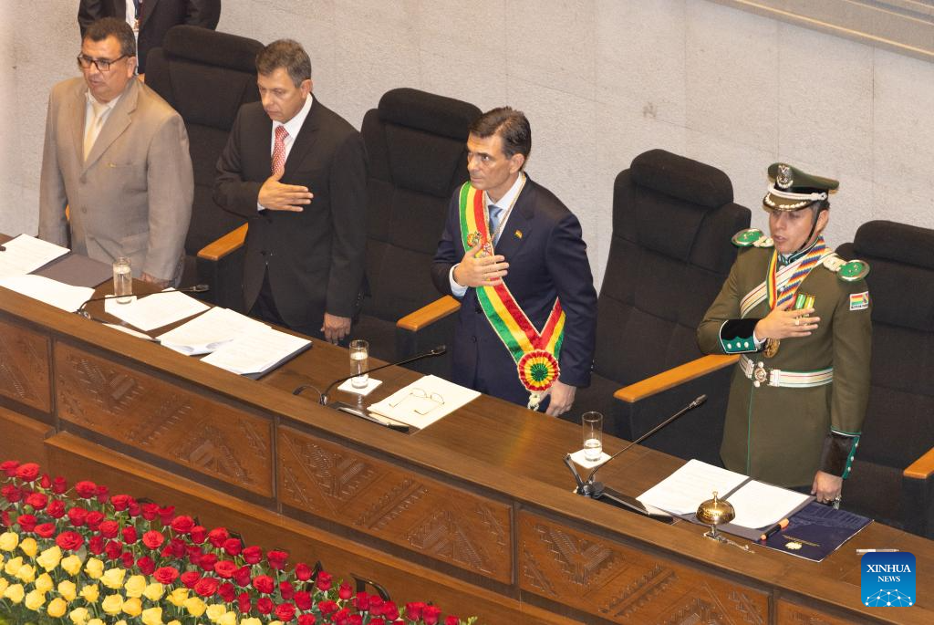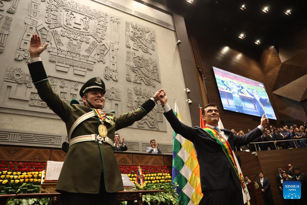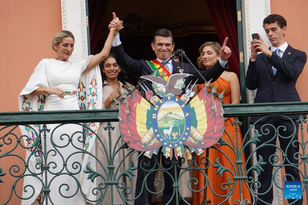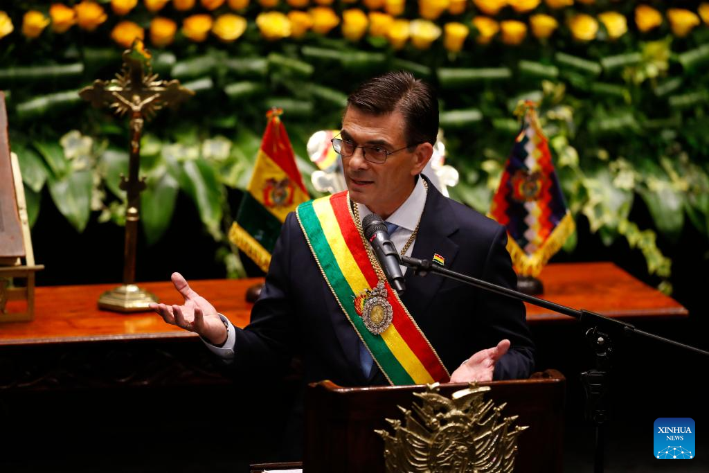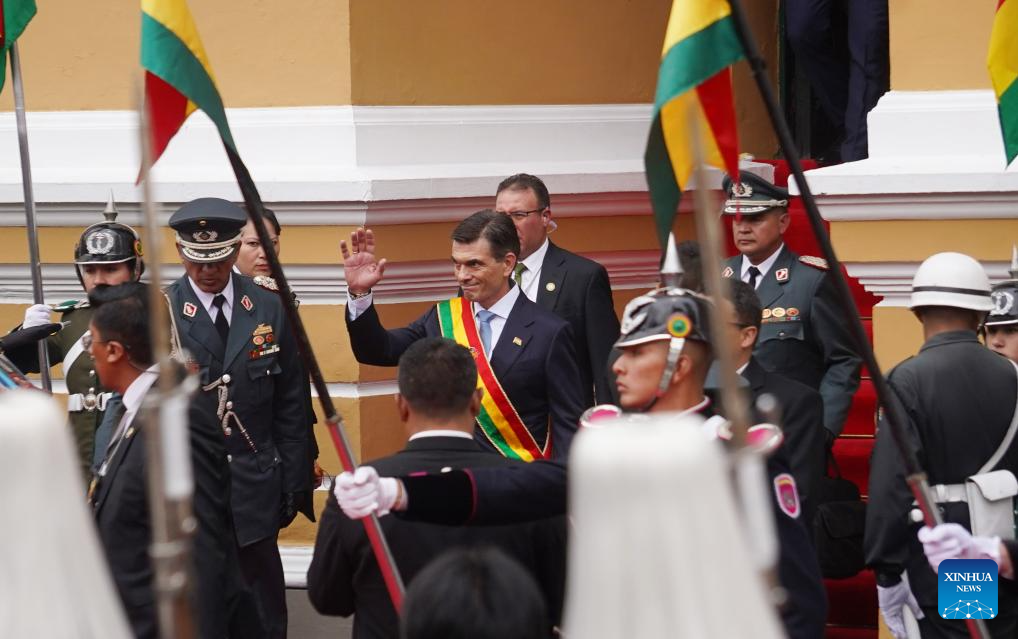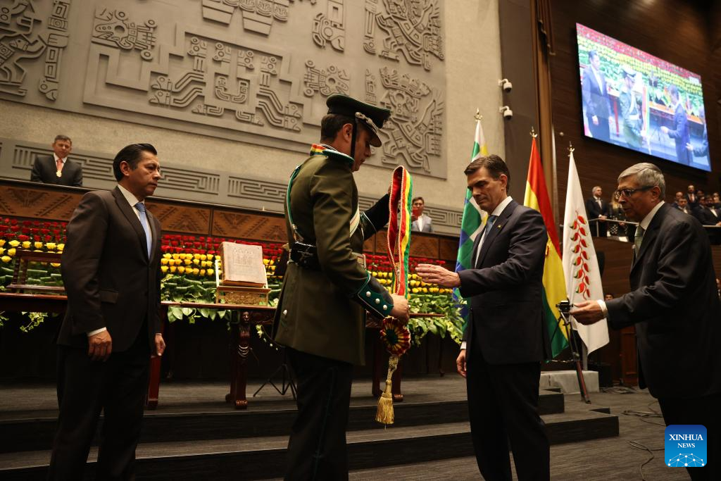 Rodrigo Paz was sworn in as the constitutional president of the Plurinational State of Bolivia for the 2025-2030 term, in the Plurinational Legislative Assembly building in downtown La Paz on Saturday. (Xinhua/Li Mengxin)
