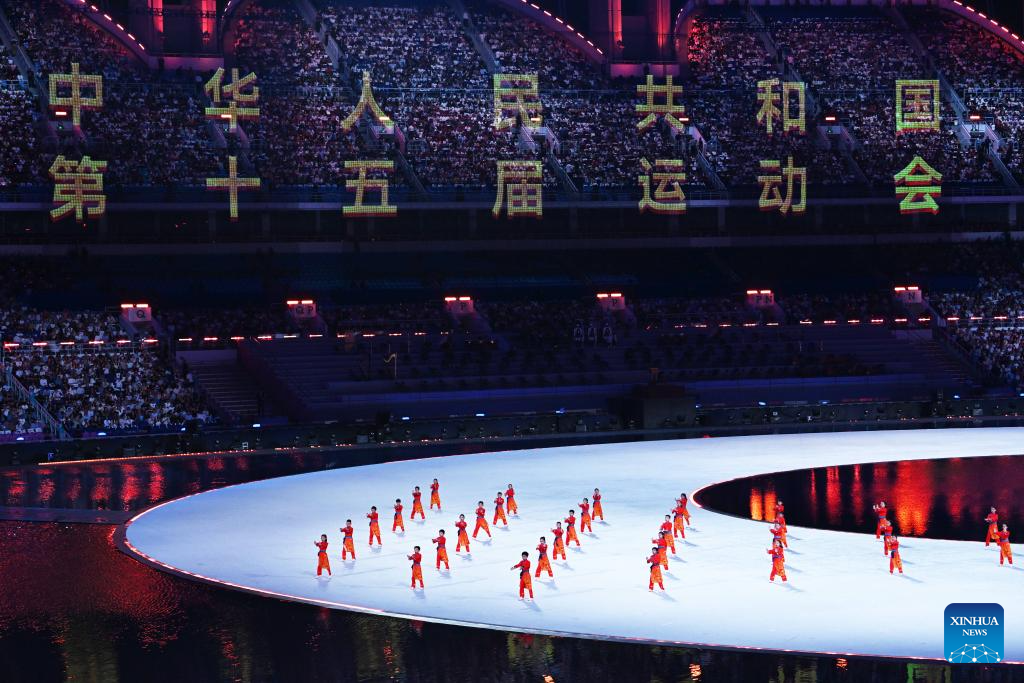 Artists perform before the opening ceremony of China's 15th National Games in Guangzhou, south China's Guangdong Province, Nov. 9, 2025. (Xinhua/Yang Guanyu)