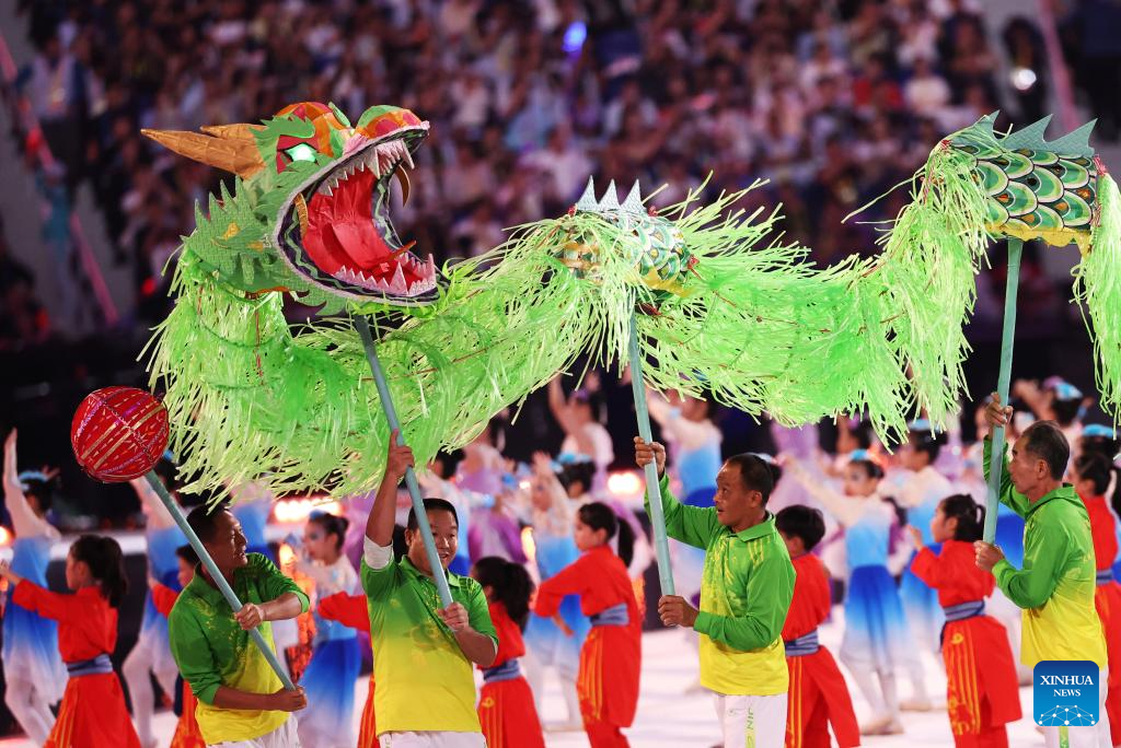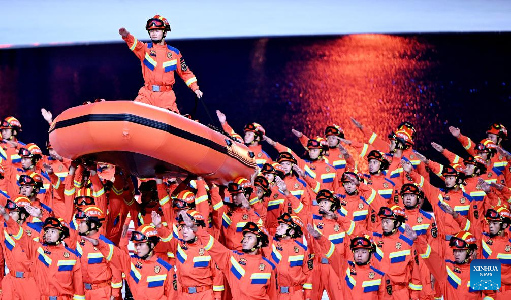 Artists perform before the opening ceremony of China's 15th National Games in Guangzhou, south China's Guangdong Province, Nov. 9, 2025. (Xinhua/Li Xin)
