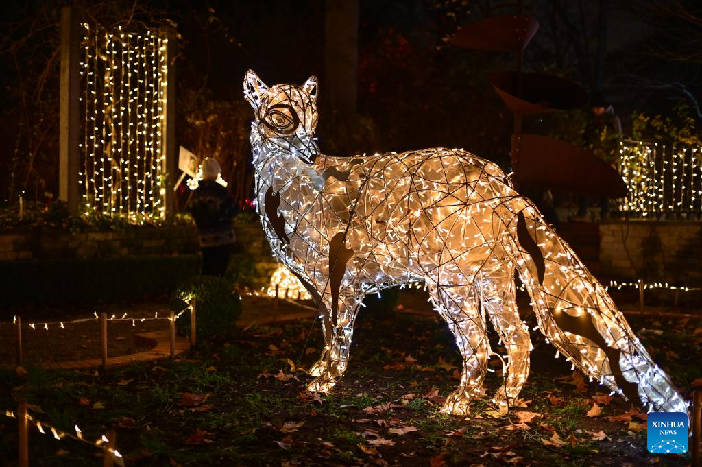 A light installation is seen at the "Magical Botanical Garden" light show at the University of Warsaw Botanical Garden in Warsaw, Poland on Nov. 8, 2025.
