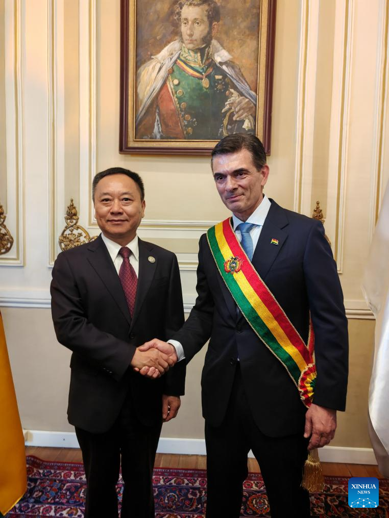 LA PAZ, Nov. 9 (Xinhua) -- Chinese President Xi Jinping's special envoy Li Guoying on Saturday attended the inauguration ceremony of Bolivia's President Rodrigo Paz in La Paz, the capital of Bolivia, at the invitation of the Bolivian government.