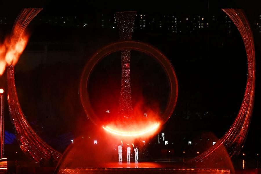 Photo taken on Nov. 9, 2025 shows the general view of the opening ceremony of China's 15th National Games in Guangzhou, south China's Guangdong Province. (Xinhua/Li Xin)Artists perform during the opening ceremony of China's 15th National Games in Guangzhou, south China's Guangdong Province, Nov. 9, 2025. (Xinhua/Li Xin)The cauldron is lit during the opening ceremony of China's 15th National Games in Guangzhou, south China's Guangdong Province, Nov. 9, 2025. (Xinhua/Li Xin)