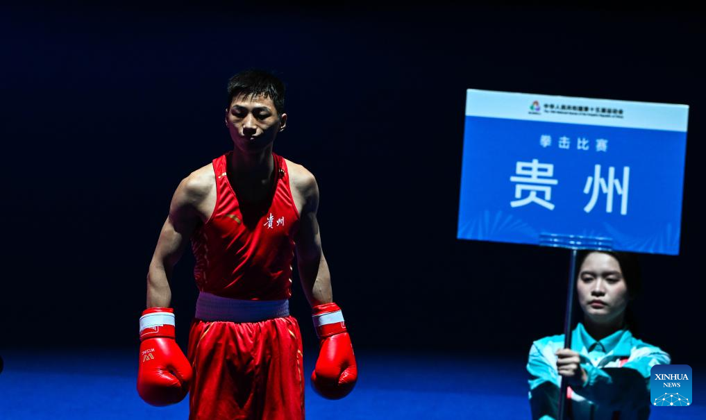 Zhang Jiamao of Guizhou is seen before the men's -51kg final of boxing at China's 15th National Games in Shenzhen, south China's Guangdong Province, Nov. 10, 2025. (Xinhua/Yang Guanyu)