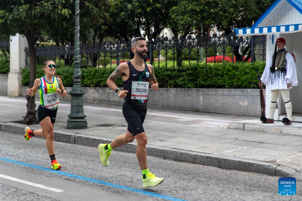 A runner competes during the 42nd Athens Marathon, in Athens, Greece, Nov. 9, 2025. (Photo by Marios Lolos/Xinhua)