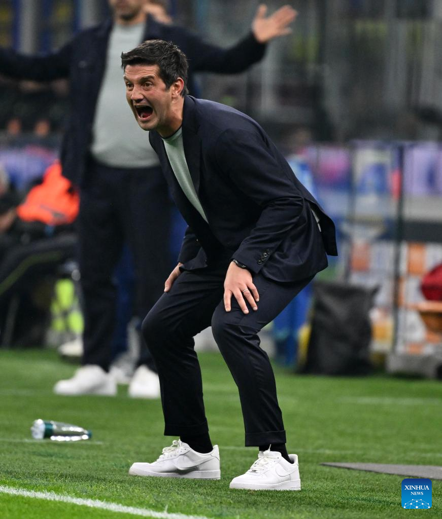 Inter Milan's head coach Christian Chivu reacts during a Serie A football match between Inter Milan and Lazio in Milan, Italy, Nov. 9, 2025. (Photo by Alberto Lingria/Xinhua)