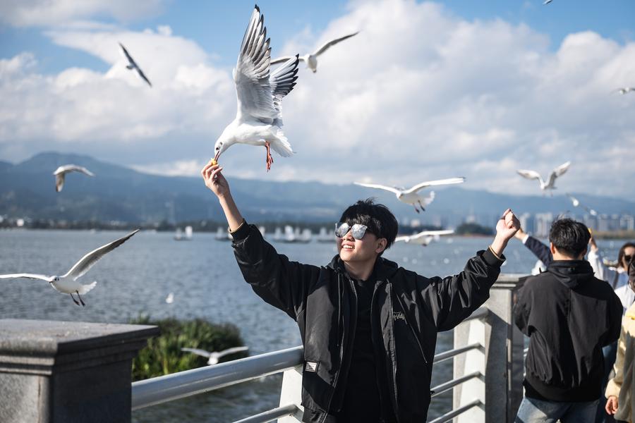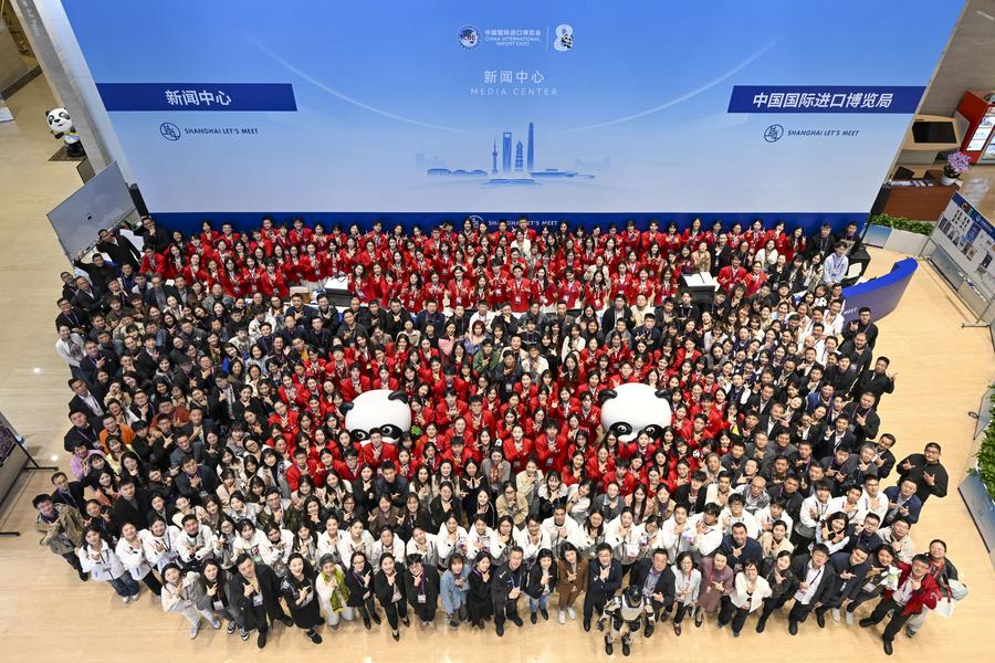 Volunteers and media workers pose for photos at the media center of the eighth China International Import Expo (CIIE) in east China's Shanghai, Nov. 10, 2025. The eighth CIIE concluded here on Monday. (Xinhua/Chen Haoming)A staff member promotes chrysanthemums via live streaming in Tancheng County, east China's Shandong Province, Nov. 10, 2025. E-commerce and logistics companies across China are busy selling, packaging and delivering goods in the run-up to the annual "Double Eleven" shopping festival which falls on Nov. 11. (Photo by Zhang Chunlei/Xinhua)Tourists feed black-headed gulls at the Haigeng Dam in Kunming, southwest China's Yunnan Province, Nov. 10, 2025. Black-headed gulls migrate to Kunming for the warm weather there in winter. (Xinhua/Wang Guansen)Zhang Zhanshuo of Shandong celebrates after the men's 400m freestyle final of swimming event at China's 15th National Games in Shenzhen, south China's Guangdong Province, Nov. 10, 2025. (Xinhua/Du Yu)This photo taken on Nov. 9, 2025 shows the U.S. Capitol in Washington, D.C., the United States. The U.S. Senate on Sunday night advanced a bipartisan spending package in a bid to end the longest government shutdown, which has entered its 40th day and caused a series of escalating disruptions. (Xinhua/Hu Yousong)Poppy crosses are seen at the Field of Remembrance on the occasion of Remembrance Day at Westminster Abbey in London, Britain, Nov. 10, 2025. Remembrance Day is observed to remember the sacrifices made by soldiers during the WWI. (Xinhua/Li Ying)Rescuers use a boat to evacuate residents from a flooded area in Navotas City, the Philippines, Nov. 10, 2025. Super Typhoon Fung-wong made landfall over Aurora province in the eastern part of Luzon Island of the Philippines on Sunday night, according to the state weather bureau. Fung-wong is the 21st tropical cyclone hitting the Philippines this year, surpassing the country's annual average of 20 storms. (Xinhua/Rouelle Umali)Contestants attend a competition in which they hold a basket of pomegranates with their left hand horizontally during the Nar Bayrami pomegranate festival in Goychay, Azerbaijan, Nov. 9, 2025. Azerbaijan's annual Nar Bayrami pomegranate festival was held here on Sunday. The festival was inscribed on the UNESCO Representative List of the Intangible Cultural Heritage of Humanity in 2020. (Xinhua/Chen Junfeng)Giant panda Yilan plays with a toy at Adelaide Zoo in Adelaide, Australia, Nov. 10, 2025. The giant panda pair Xingqiu, a male, and Yilan, a female, arrived in Adelaide on Dec. 15, 2024. According to the contract, they will spend ten years at Adelaide Zoo, replacing the pair Wangwang and Funi who returned to China last November after 15 years in Australia. (Xinhua/Ma Ping)■