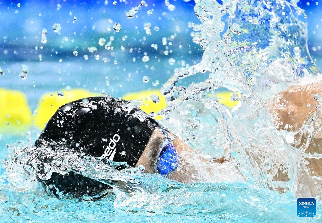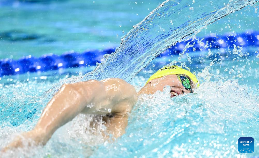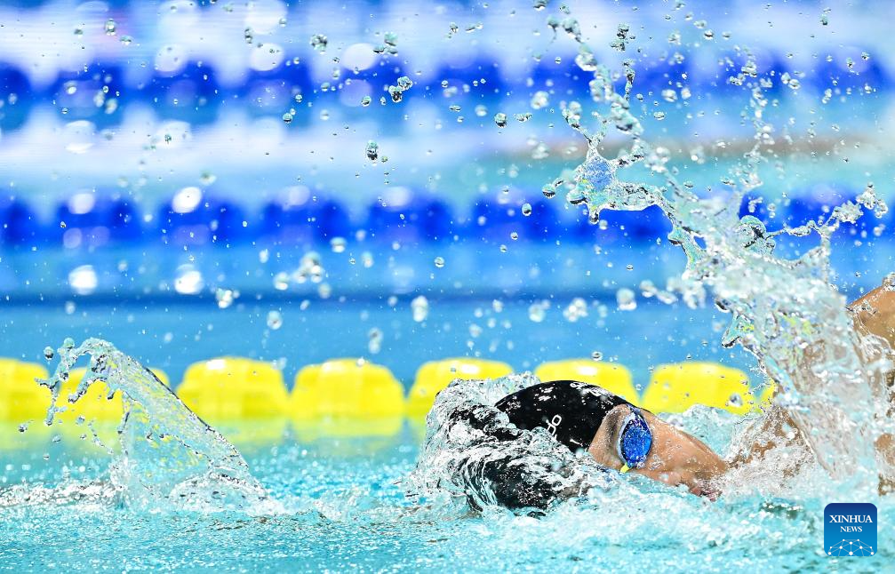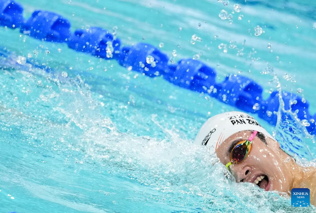Pan Zhanle of Zhejiang competes during the men's 200m freestyle final of swimming at China's 15th National Games in Shenzhen, south China's Guangdong Province, Nov. 12, 2025. (Xinhua/Xue Yuge)