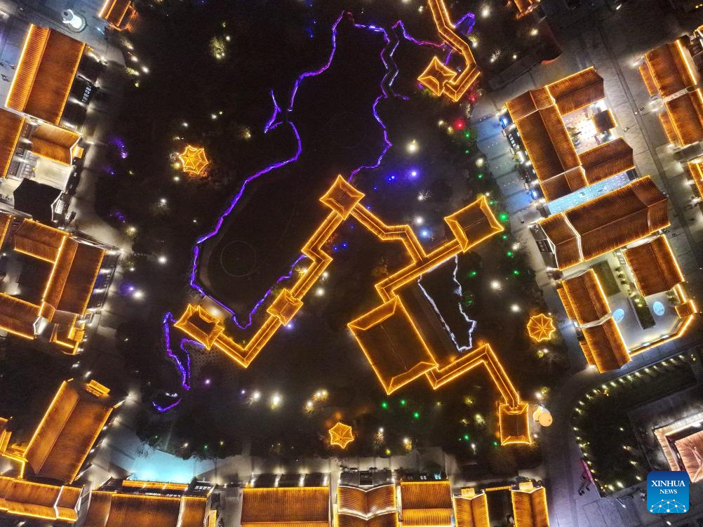 A drone photo taken on Nov. 11, 2025 shows the Langyin Tower along the Cangzhou section of the Grand Canal in Cangzhou City, north China's Hebei Province.