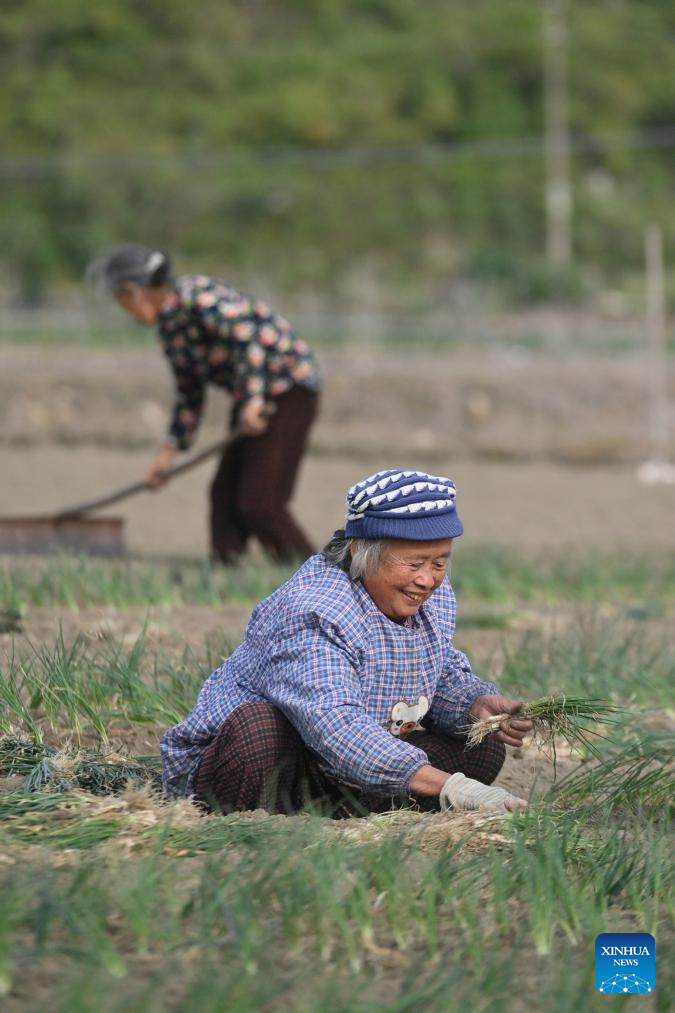 Villagers plant chives in Longxing Village of Sandu Town in Liuzhou City, south China's Guangxi Zhuang Autonomous Region, Nov. 11, 2025. Sandu Town has in recent years promoted the standardized and industrialized production of chives, and developed an integrated business system that ranges from planting and processing to sales and service.